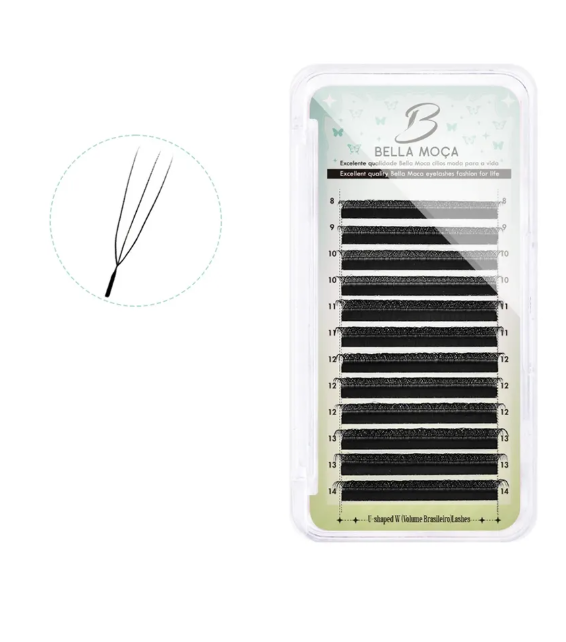 Os Cílios 3DW U Bella Moça foram desenvolvidos para lash designers que desejam criar extensões com volume marcante e simetria perfeita. Seu formato em “U” facilita o encaixe sobre o fio natural, garantindo maior estabilidade e retenção mesmo em aplicações de alto volume. Ideais para o volume brasileiro, proporcionam um olhar expressivo e sofisticado com acabamento uniforme.