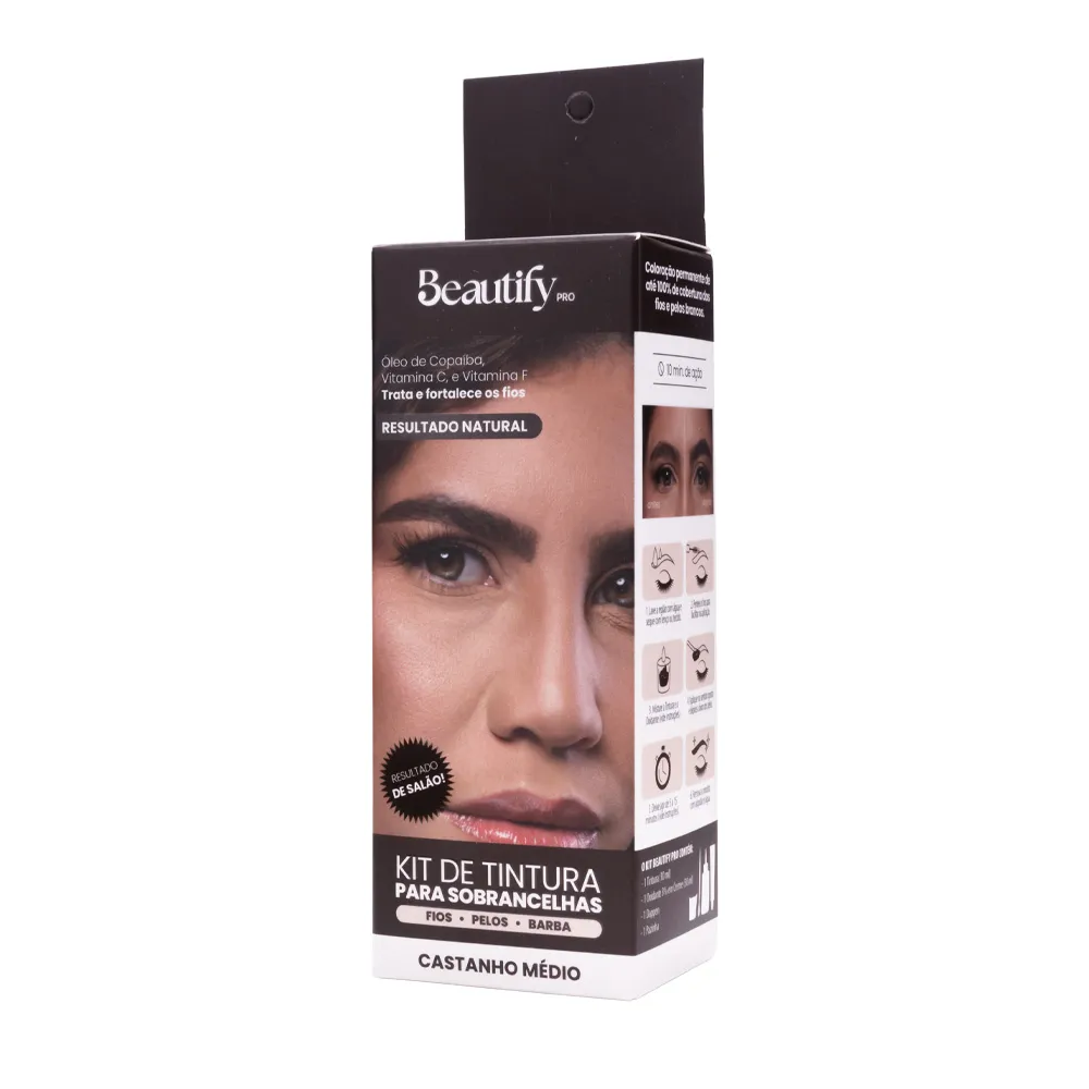Kit Tintura Para Sobrancelhas, Fios, Pelos e Barba 10 gr - Castanho Médio