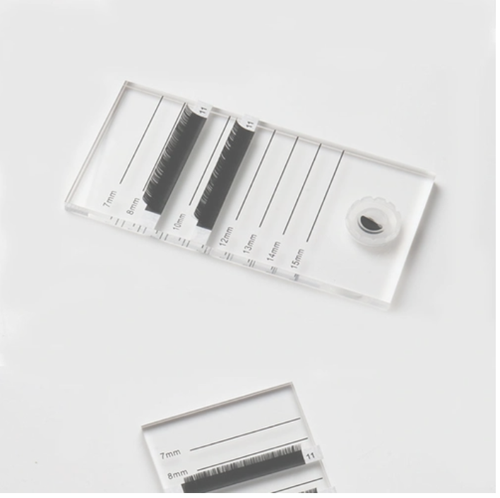 Muito utilizada para facilitar e agilizar a aplicação dos fios durante o procedimento de alongamento de cílios, pois possibilita que o profissional distribua as fitas/chicotes de acordo com a numeração utilizada no mapping. Consiste em uma base acrílica, contento uma cavidade para colocar o batoque flor (disponível em nossa loja) e sinalizada com os tamanhos dos fios, onde nelas é aderida as tiras retiradas da bandeja.